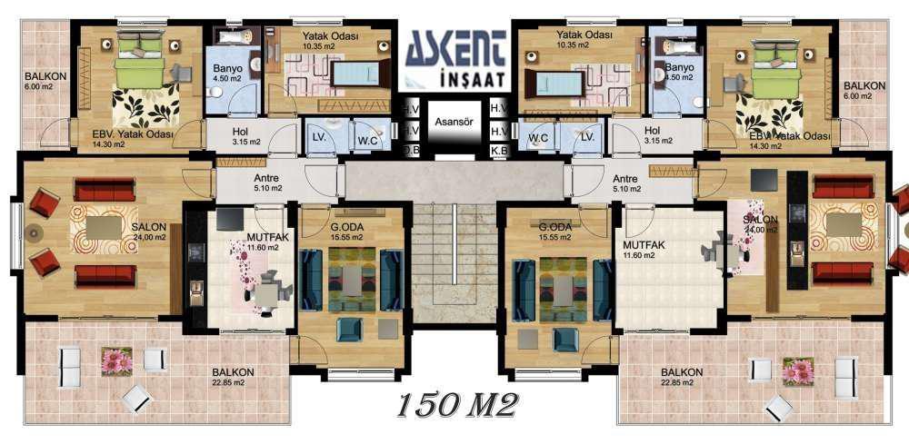 | Daireler | 3+1 : Brüt 150 M2 |