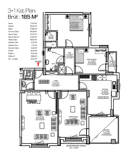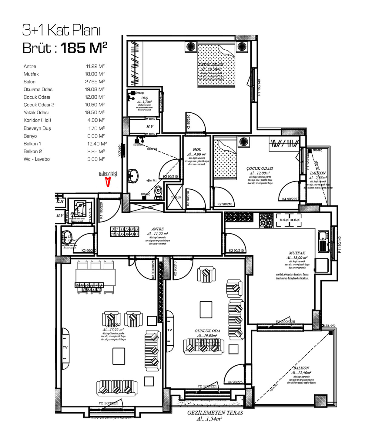 | Daireler | 3+1 : Brüt 180 M2 4+1 : Brüt 210 M2 |