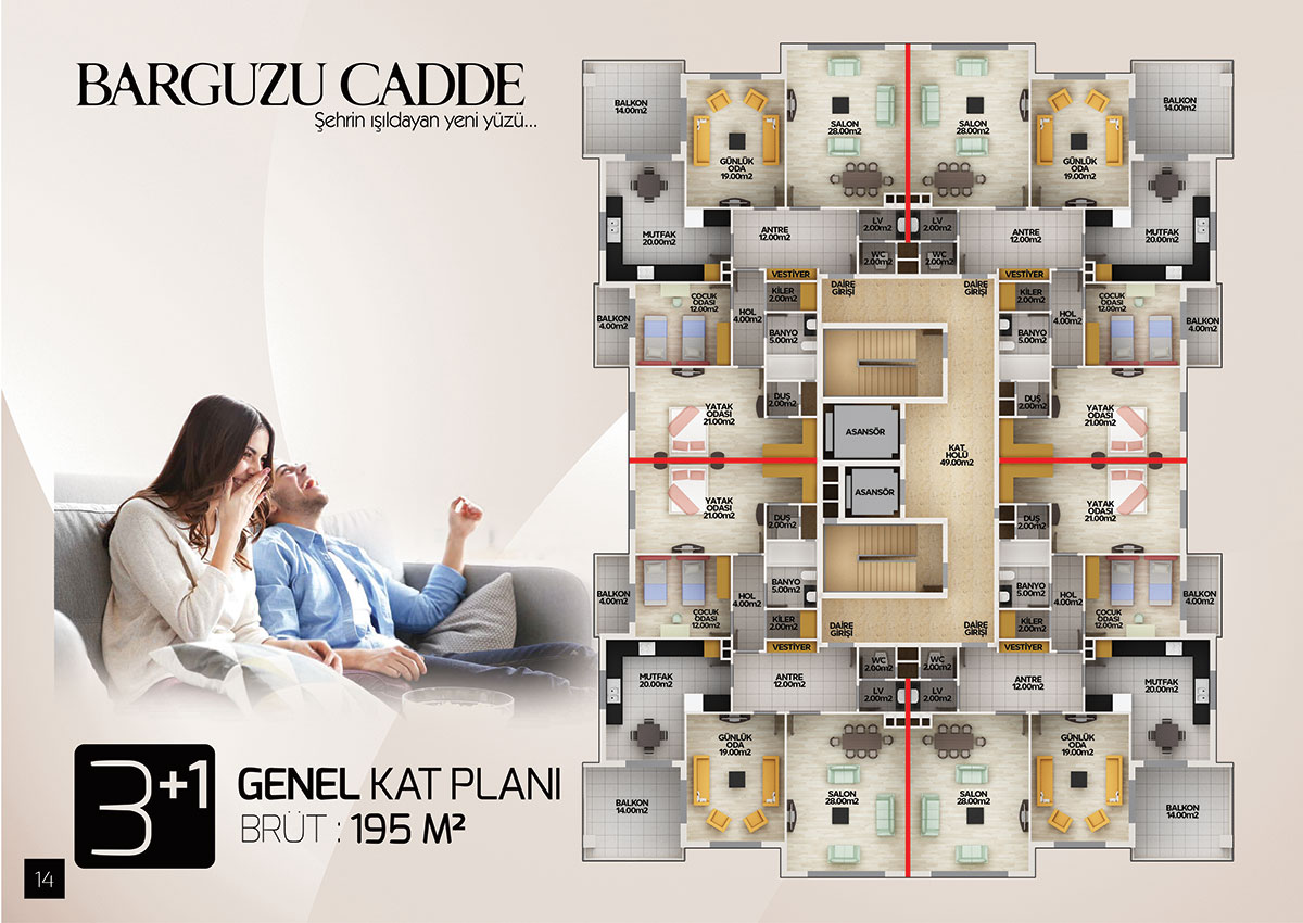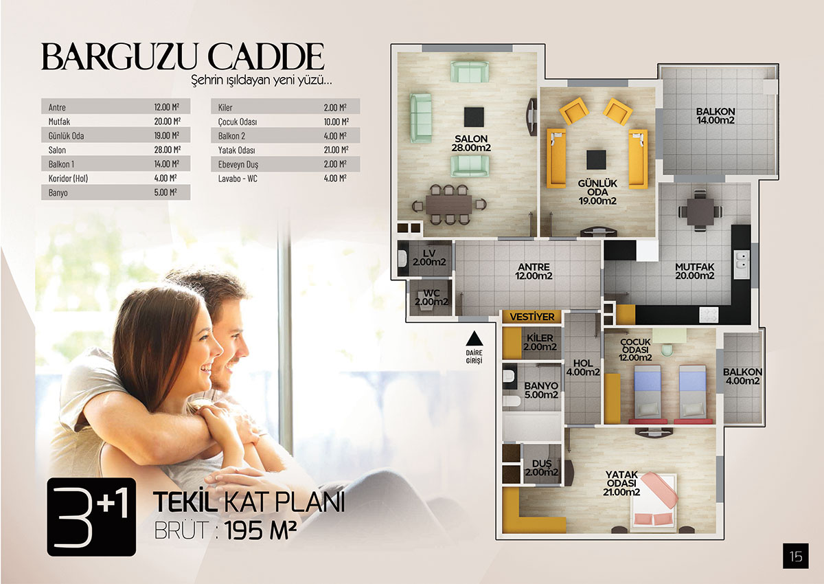 | Daireler | 3+1 : Brüt 195 M2 |