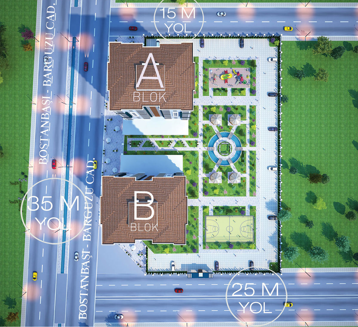 Projemiz; 35 metrelik Bostanbaşı - Barguzu ana caddeye cephe konumdadır. Bu nedenle diğer projelere göre konum avantajı ve yatırım getirisi yüksektir. Ayrıca projemiz, Fahri Kayahan - Karakavak - Bostanbaşı - Yakınca semtlerini birbirine bağlayan 35 metrelik yola çok yakın ve 100 metre mesafededir.