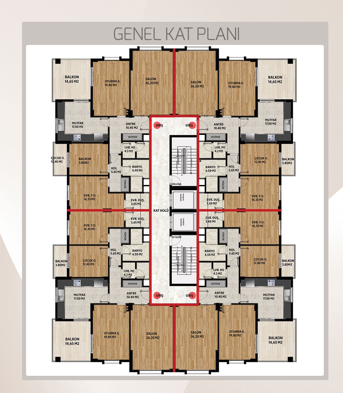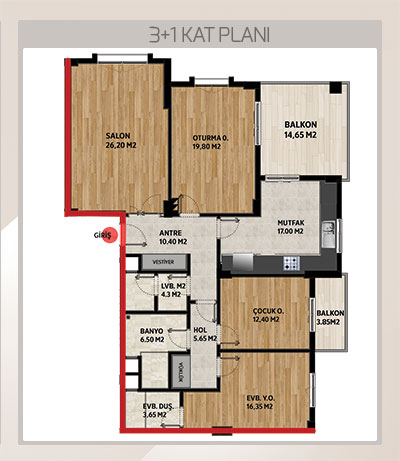 | Daireler | 3+1 : Brüt 185 M2 |