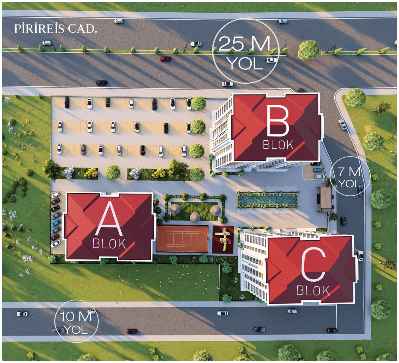 | Alanlar | Proje Alanı : 8900 M2 Yeşil Alan : 6200 M2 |